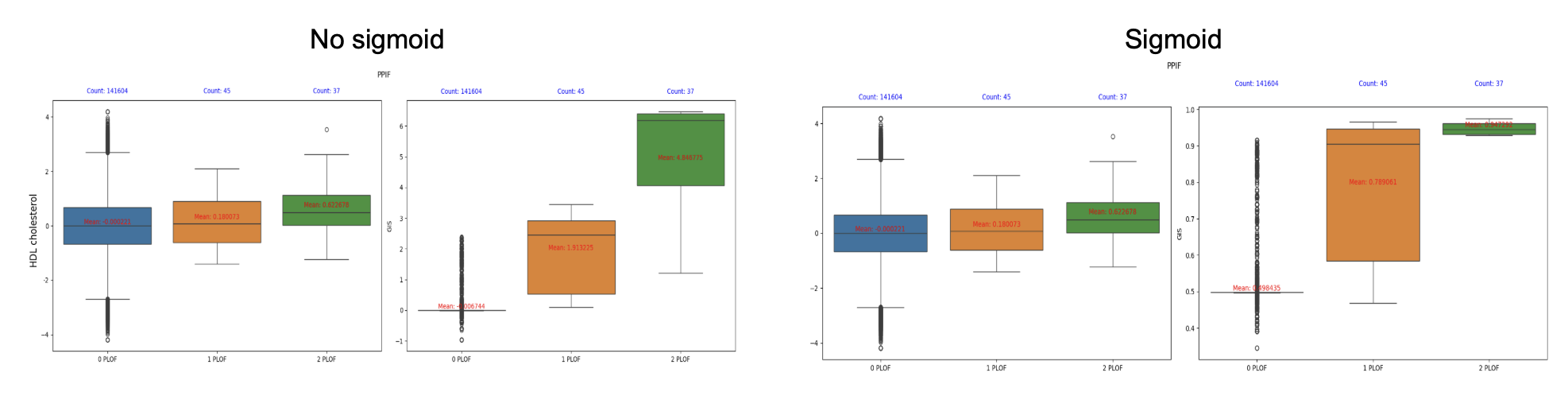 Removing the final sigmoid layer alleviates issues with burden distribution and produces scores that better align with biological expectations